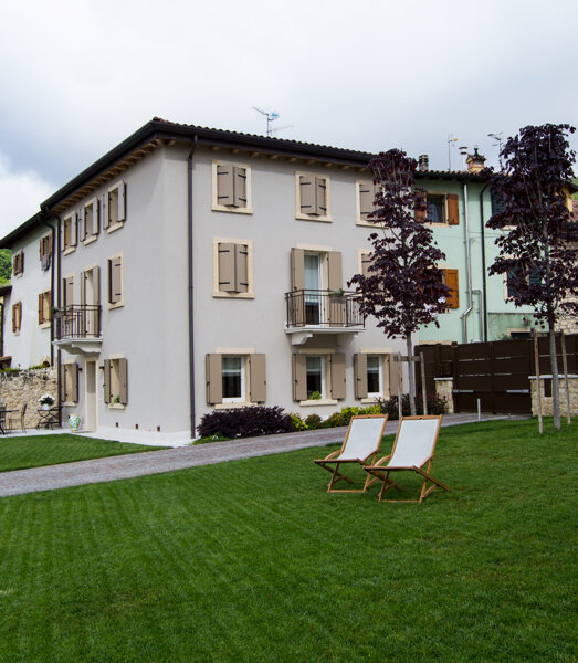 Casa Jago dall’Ora è situata in un borgo storico con corte chiusa e privata immersa nel vigneto interno alla proprietà.